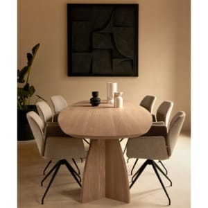 Crafted from solid oak, the Al Cocoon Dining Table features a uniquely sculpted frame that seamlessly blends strength with elegance. Its oval silhouette creates a welcoming space for shared meals, deep conversations, and unforgettable moments. The design feels both contemporary and timeless, making it the perfect centerpiece for a modern home with a soul.