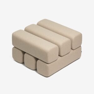 Inspired by a quiet moment in the mountains, firewood stacked by hand, each block is padded and upholstered by hand, preserving a form that feels sculptural yet familiar. Wrapped in boucle chosen not just for its texture, but for the way it softens every edge, Noa offers comfort that’s both seen and felt.