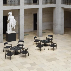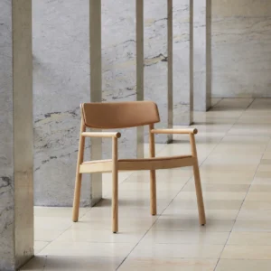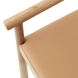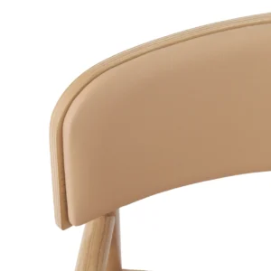 The Tobi Ash Upholstered Armchair offers ample seating space with a gentle curve that aligns with the body’s natural contours, providing optimal comfort and support. Upholstered in either tan or black faux leather, the wide, curved backrest slightly tilts to offer supportive comfort. The armrests, smoothly integrated into the design, ensure a seamless connection between the seat and backrest, boosting its aesthetic allure. These armrests, at the perfect height, make the chair suitable for dining rooms, living rooms, or offices.